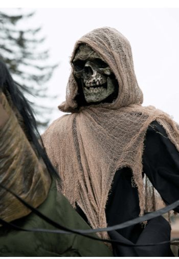 Seasonal Visions Animated Reaper’s Ride Prop PACKAGE INCLUDES 1 reaper Halloween prop. CREEPY DESIGN: Scare everyone at the party and add this reaper’s ride decoration prop. PERFECT DECORATION: This decoration prop is a perfect decoration for a Halloween party. QUALITY MATERIALS: This reaper prop is made of durable and high-quality materials that can be reused for the next Halloween party. WIDE RANGE OF USE: Use this prop to decorate indoor or outdoor parties.