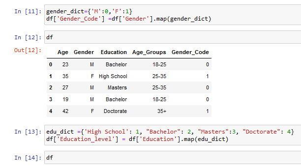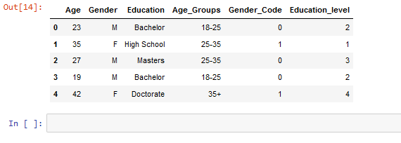 ‘Education’ : [“Bachelor”, “High School”, “Masters”,”Bachelor”, “Doctorate”]})