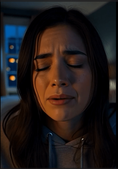 Emma jolts, slamming the stop button. Silence. She shakes her head, blaming fatigue.